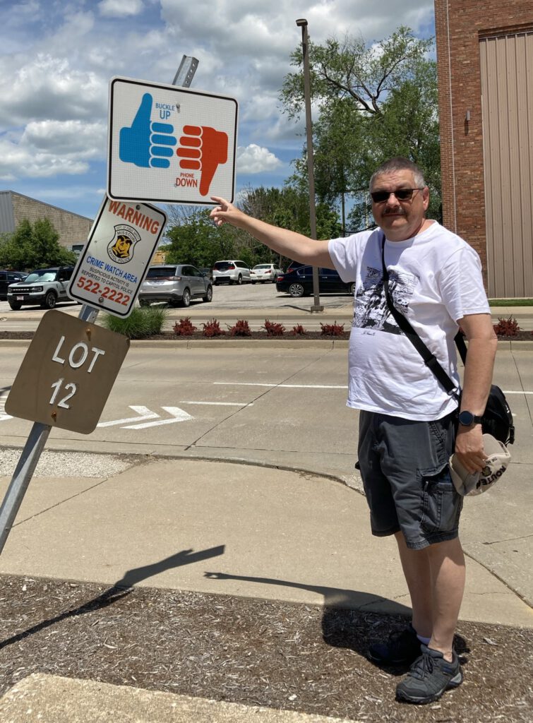 Am Parkplatz mache ich meine Reisebegleitung auf nützliche Sicherheitshinweise aufmerksam.